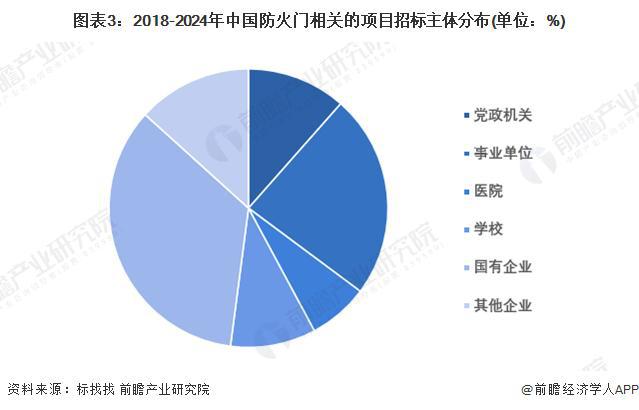 2018年至今,从中国防火门行业招标公告中的招标主体类型来看,主体安博平台 安博体育在线主要为国有企业,占招标总数的35%左右;其次是事业单位,占招标总数的24%左右。